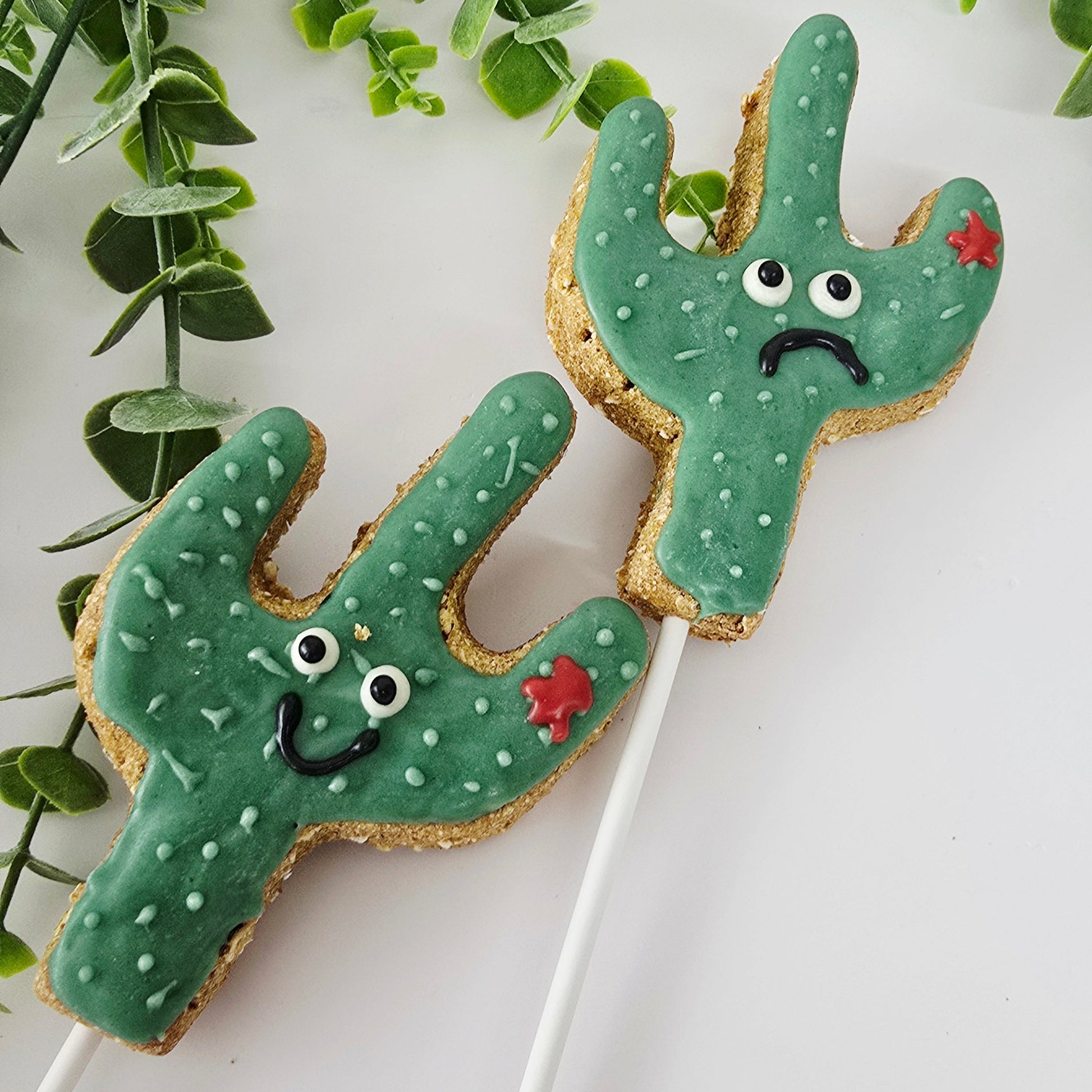 Enjoy a fun and quirky treat with the Cactus Pop.A crunch biscuit topped with carob biscuit. Choose between a happy or sad cactus character to match your vibe, making snack time both tasty and playful. Perfect for those who love a little whimsy with their sweets!