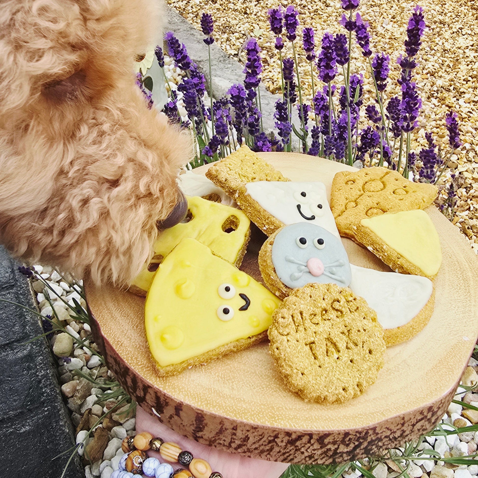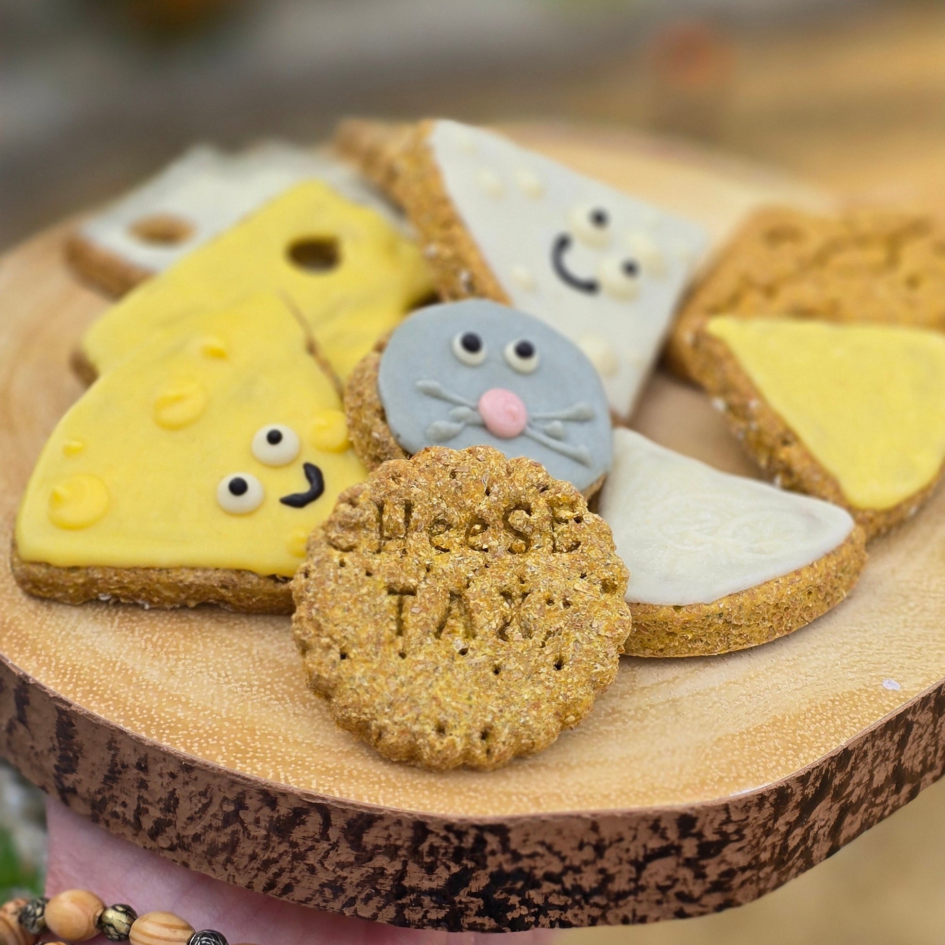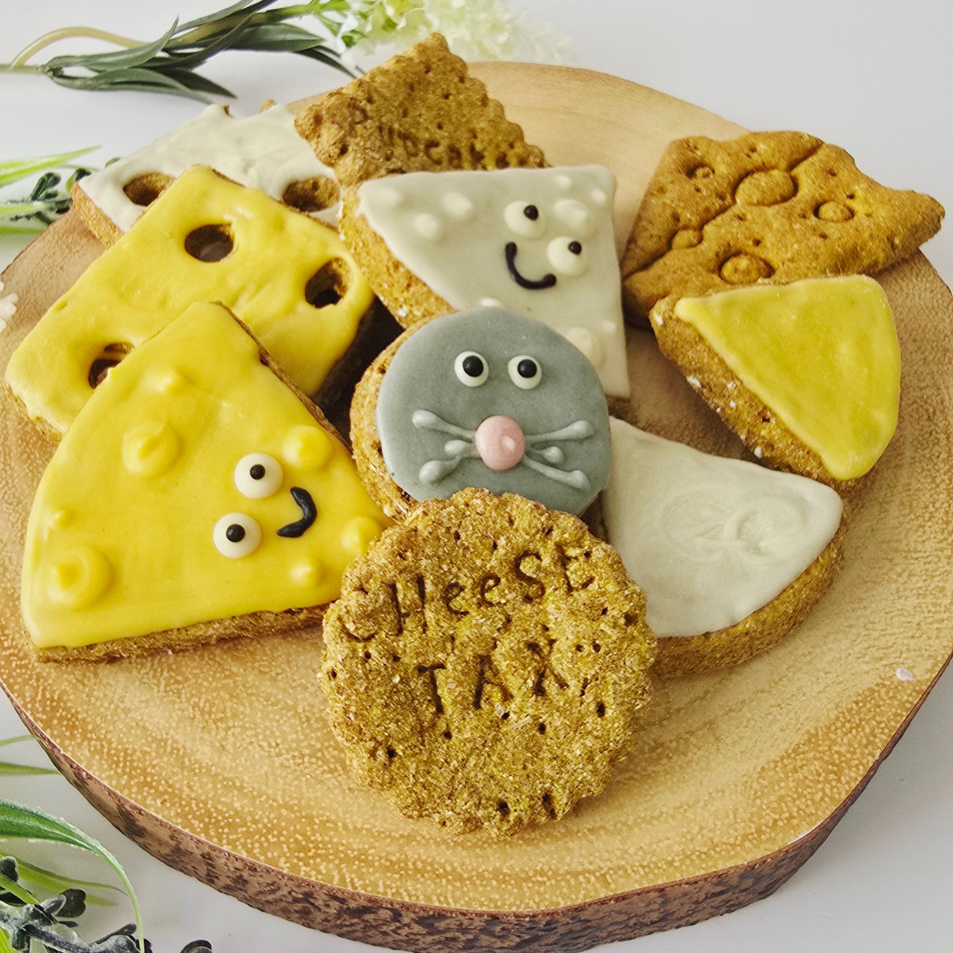 The ultimate treat box for your little fromage fiend 🐾 A mix of crunchy biscuits and cheeky iced goodies – all cheese-themed and 100% pup-safe (no real dairy, just drool-worthy flavour).