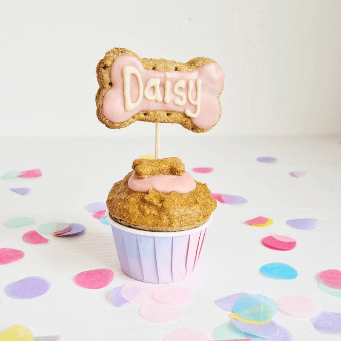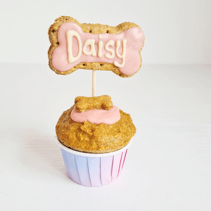 Make your dog's birthday special with this Pupcake Set. It includes all you need to make your dogs birthday pawsome - 2 dog cupcakes, featuring your dog's name, and their age. Personalise your pup's special day with this unique dog cake gift set.