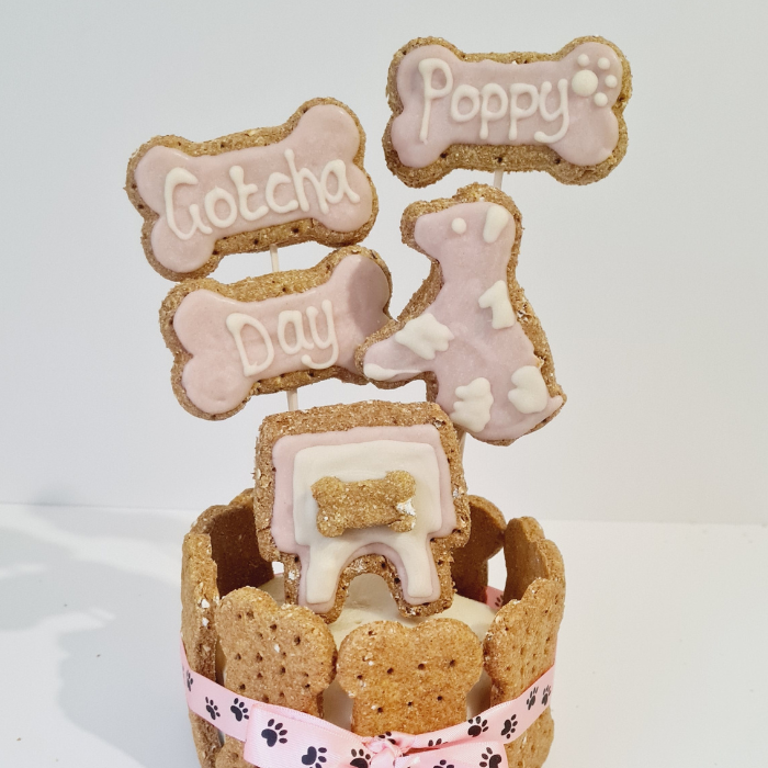 Your cake will come with 5 additional handmade dog treats to top your cake as you wish