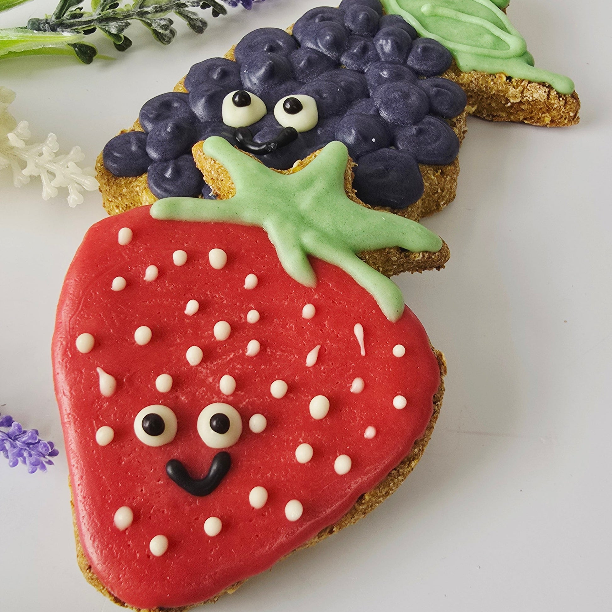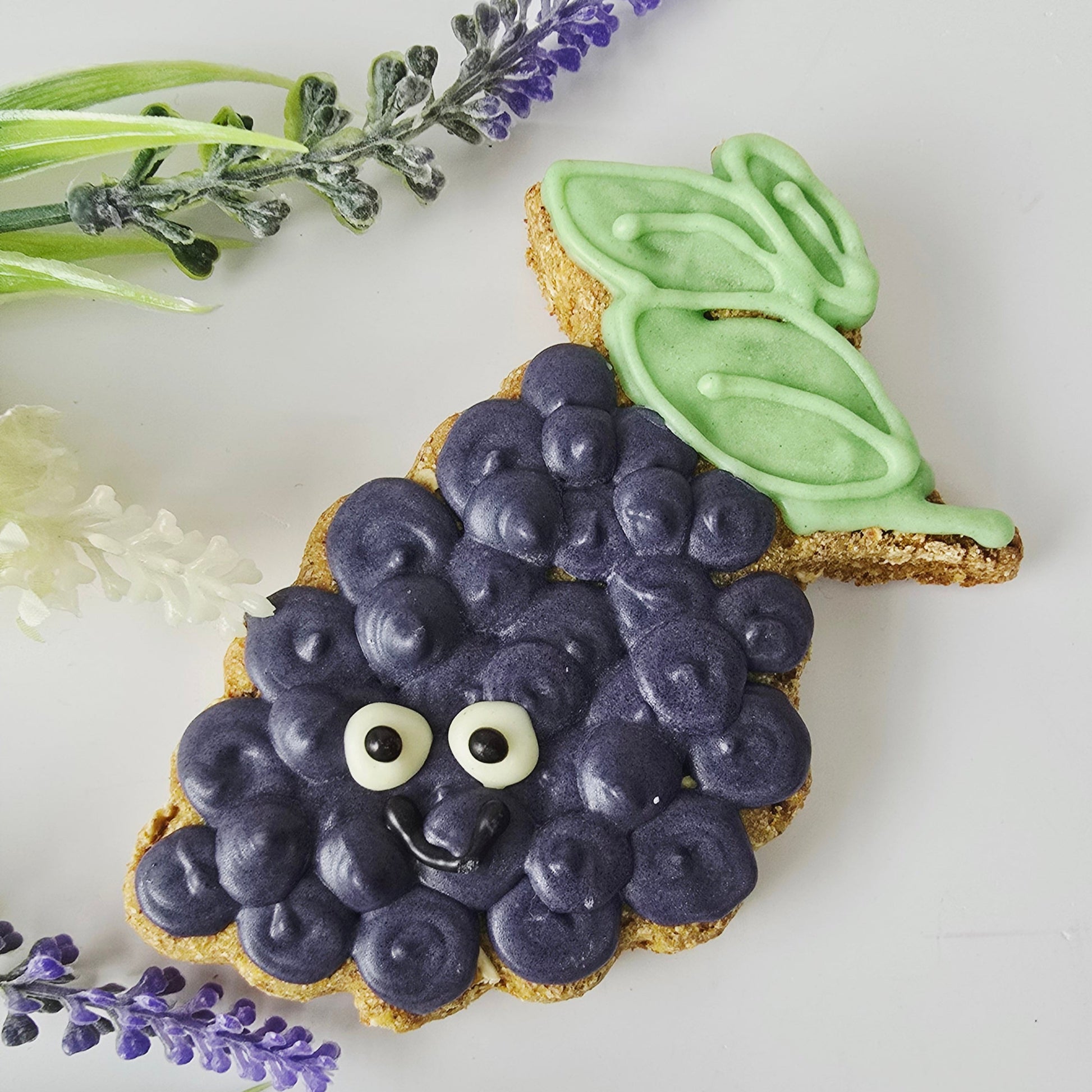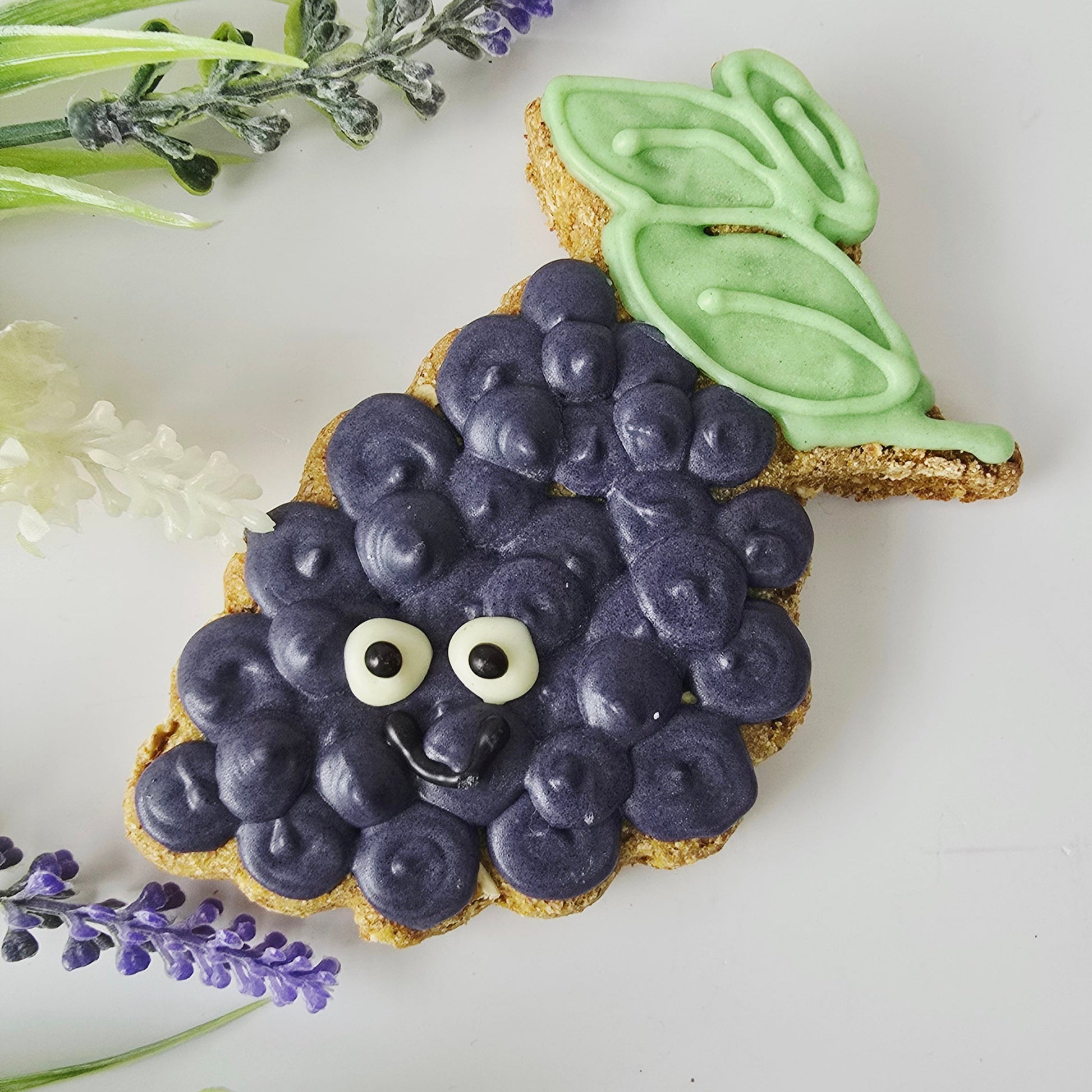 This grape-inspired treat is totally safe and 100% fun. With a bunch of bubbly purple icing blobs and happy little eyes, itās basically the sassiest āgrapeā your dog will ever munch. No real grapes involved, just tasty dog-friendly ingredients and lots of wag-worthy joy.
