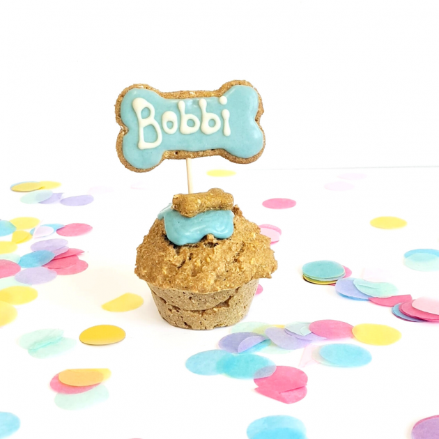 All our dog cupcakes are topped with our creamy hand made Carob dog icing, with a peanut butter dog treat, in addition to your personalised bone.