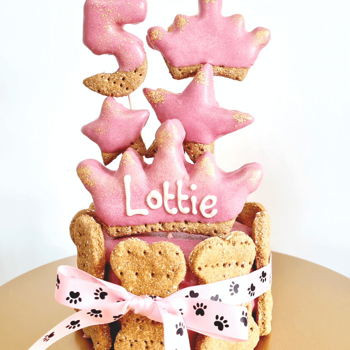 Every dog needs a crown and now they can with our stunning Deep Pink Crown themed dog cake