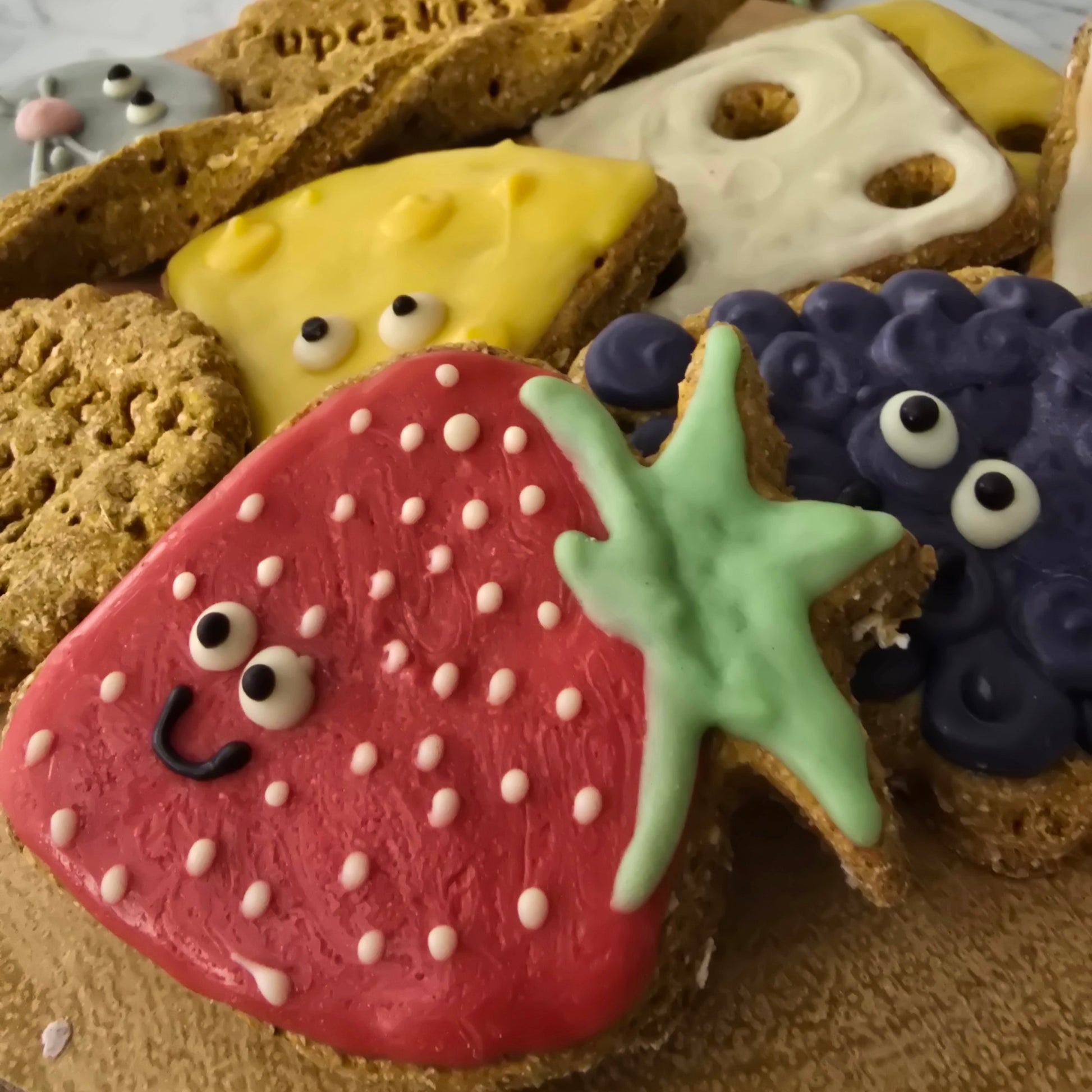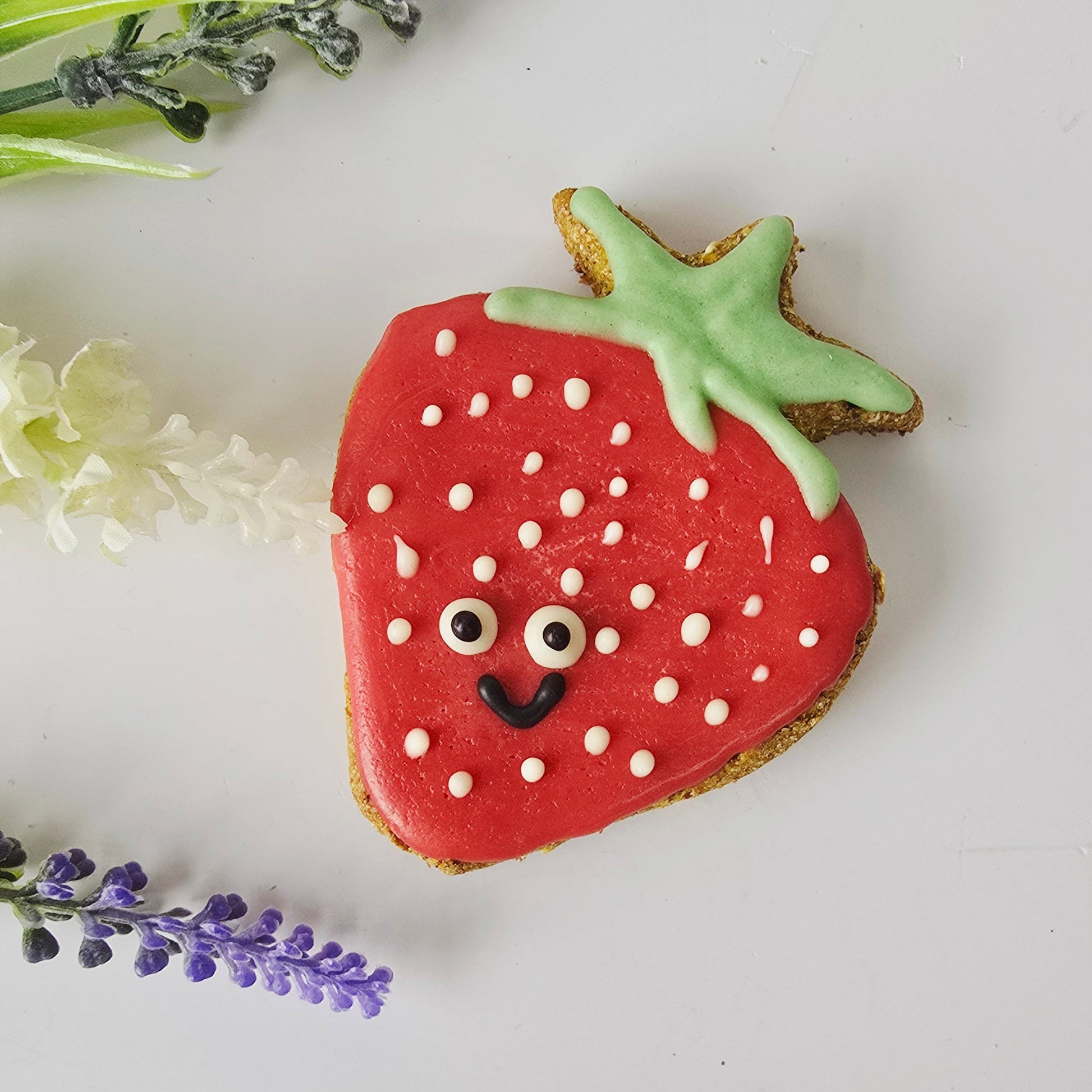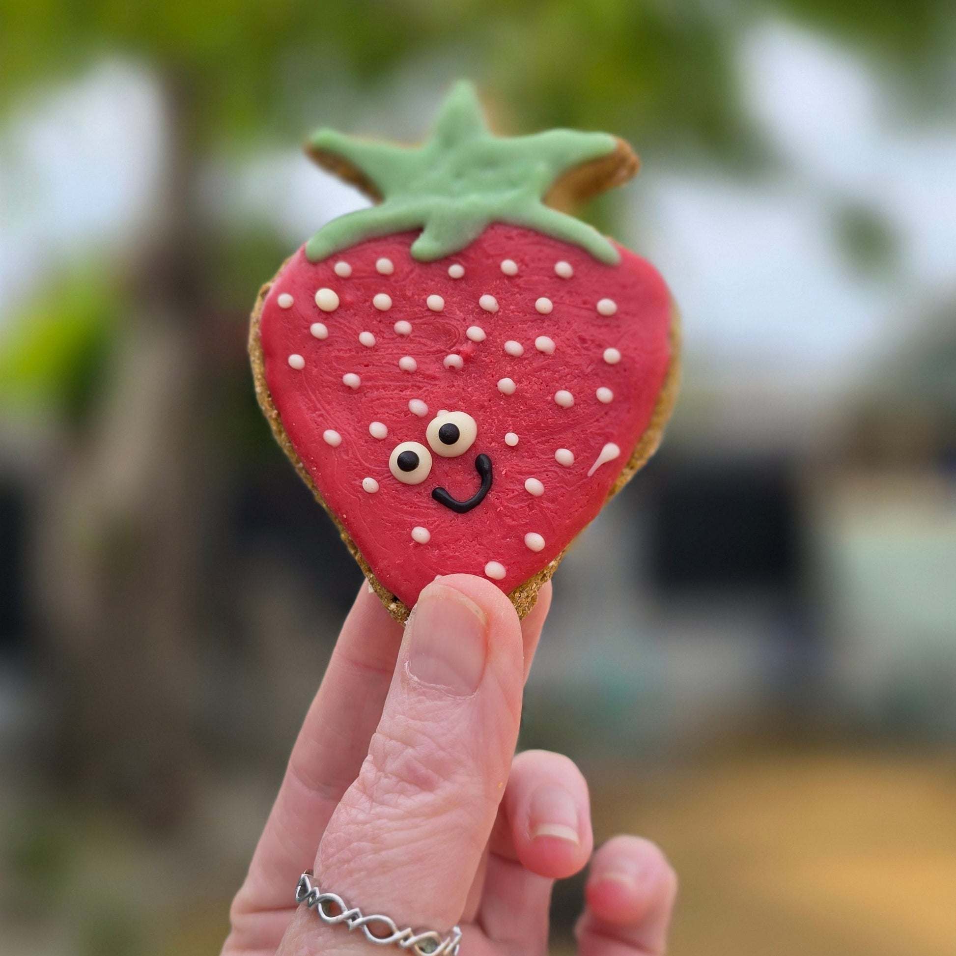 Sweet, cheeky, and ready to steal hearts (and treats). This berry cute biscuit is packed with crunch and topped with dog-friendly carob icing in vibrant red and green. It may look like a juicy strawberry, but thereās no actual fruit inside ā just safe, wholesome, tail-wagging goodness.